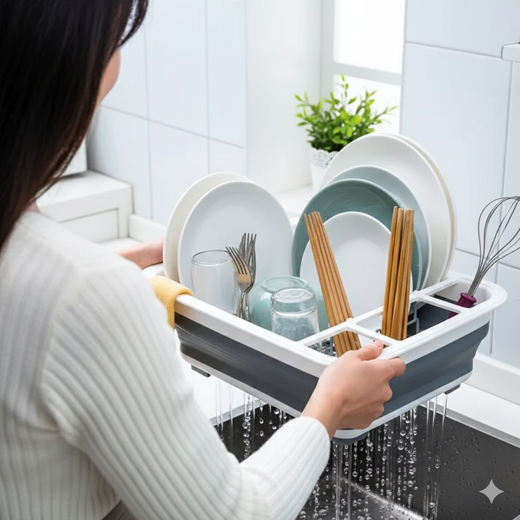 El Escurridor Plegable Woowo es la solución ideal para quienes buscan practicidad y diseño en el día a día. Su formato plegable te permite escurrir platos, vasos y cubiertos cómodamente y guardarlo en segundos, ocupando el mínimo espacio.